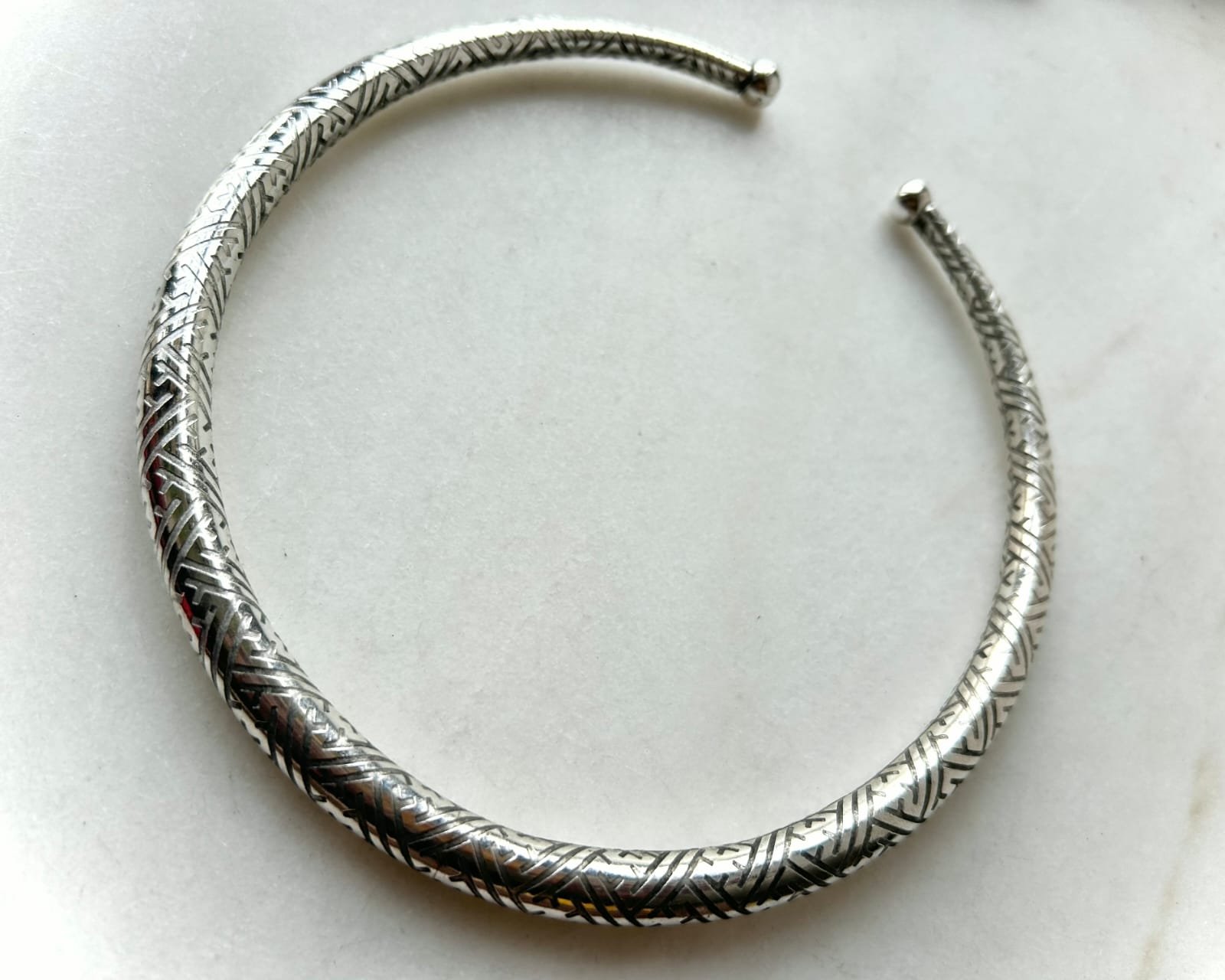 Tribal Pattern Silver Toned Brass Choker Set A sleek and simple set of 3 handcrafted brass chokers…