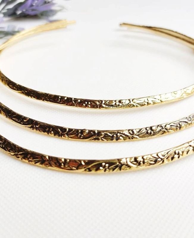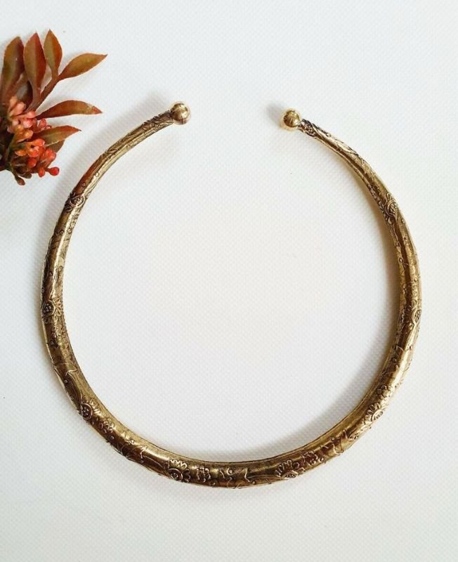 Vintage Garden Torque Brass Choker Set A set of three richly detailed floral-engraved brass torque chokers, perfect…