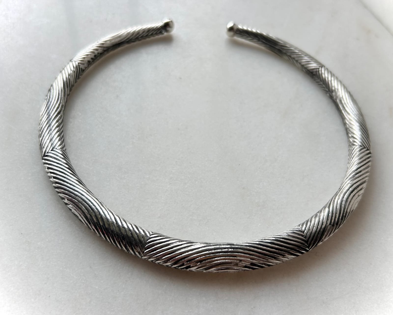 Twisted Cable Silver Tone Brass Choker Set