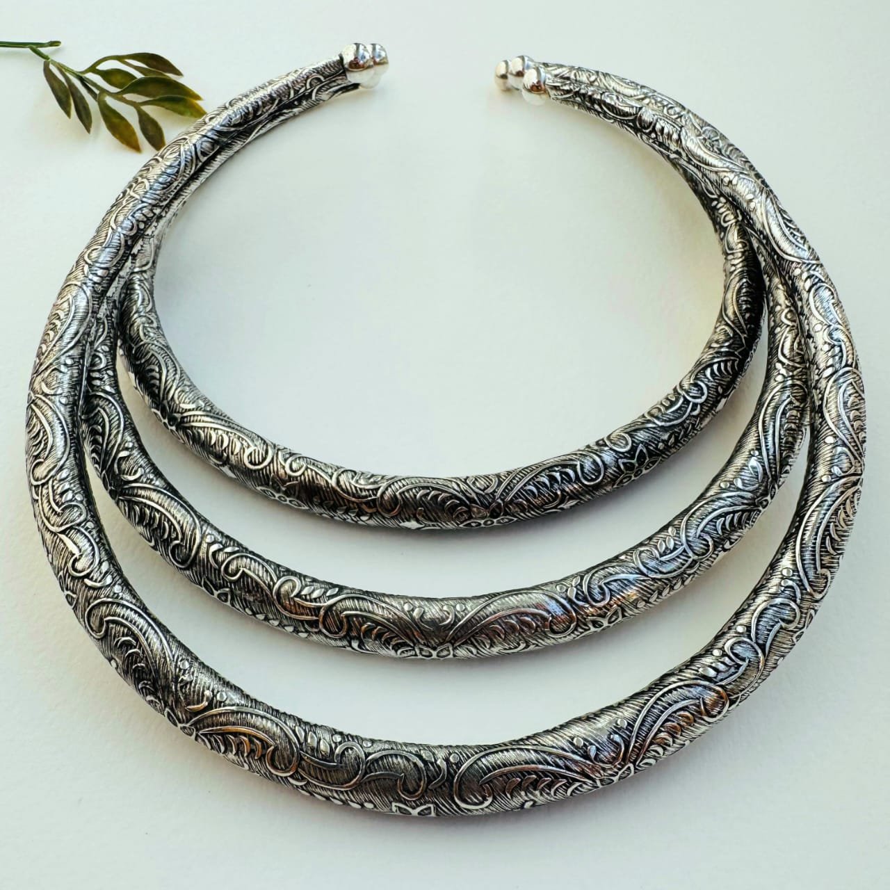 Sleek & Engraved Silver Toned Brass Choker Set A sleek and simple set of 3 handcrafted brass…