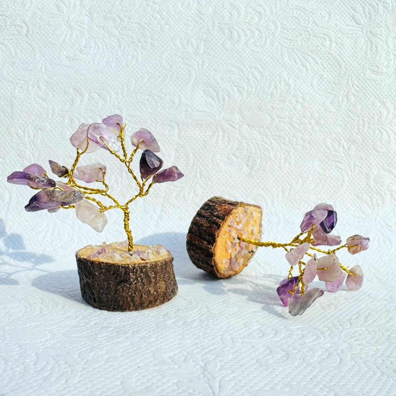 Amethyst Gemstone Bonsai Baby Money Tree For Luck Handcrafted Amethyst gemstone bonsai tree with purple stone chips…