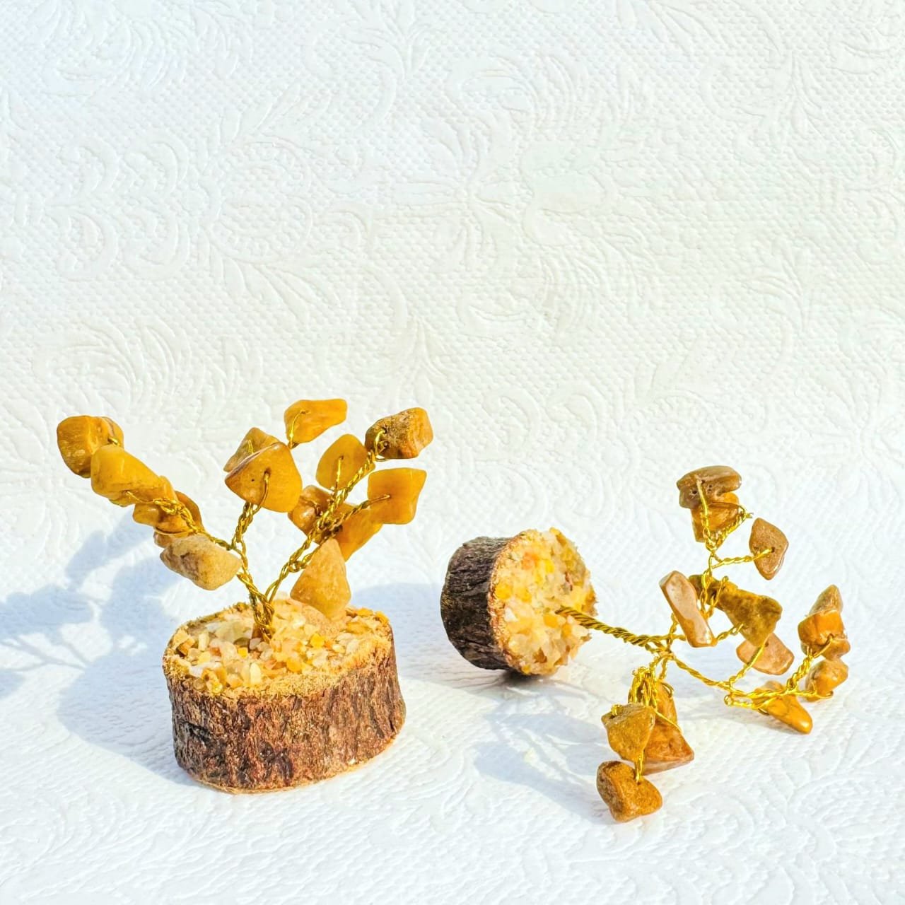 Golden Yellow Gemstone Bonsai Baby Money Tree For Luck Handcrafted Yellow gemstone bonsai tree with golden yellow…