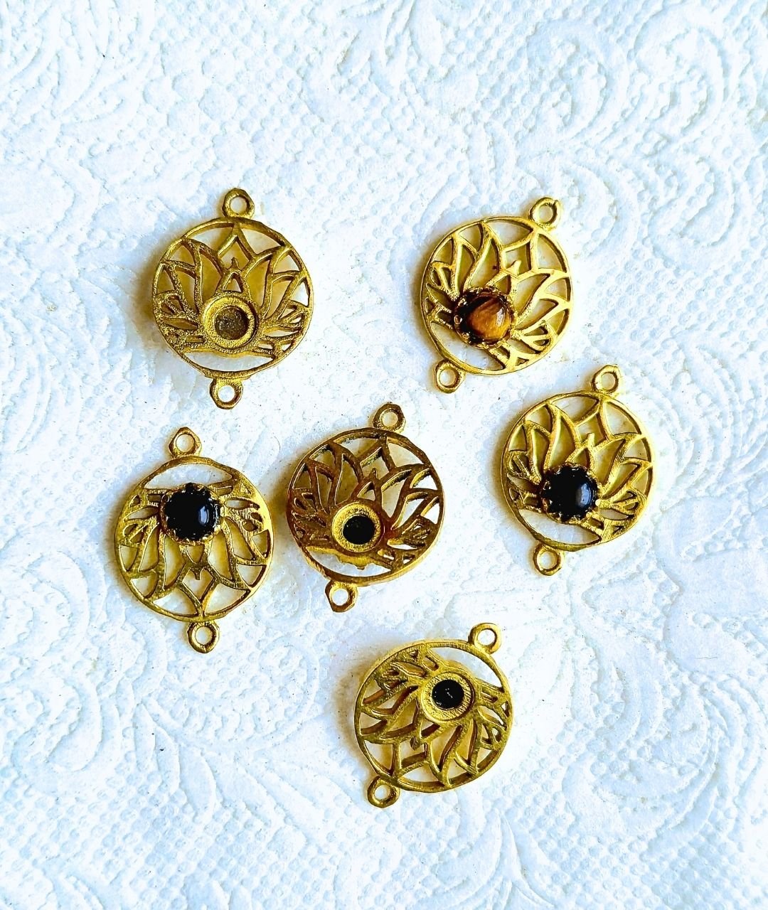 Lotus Flower Brass Disc Brass Stones Charms Connectors