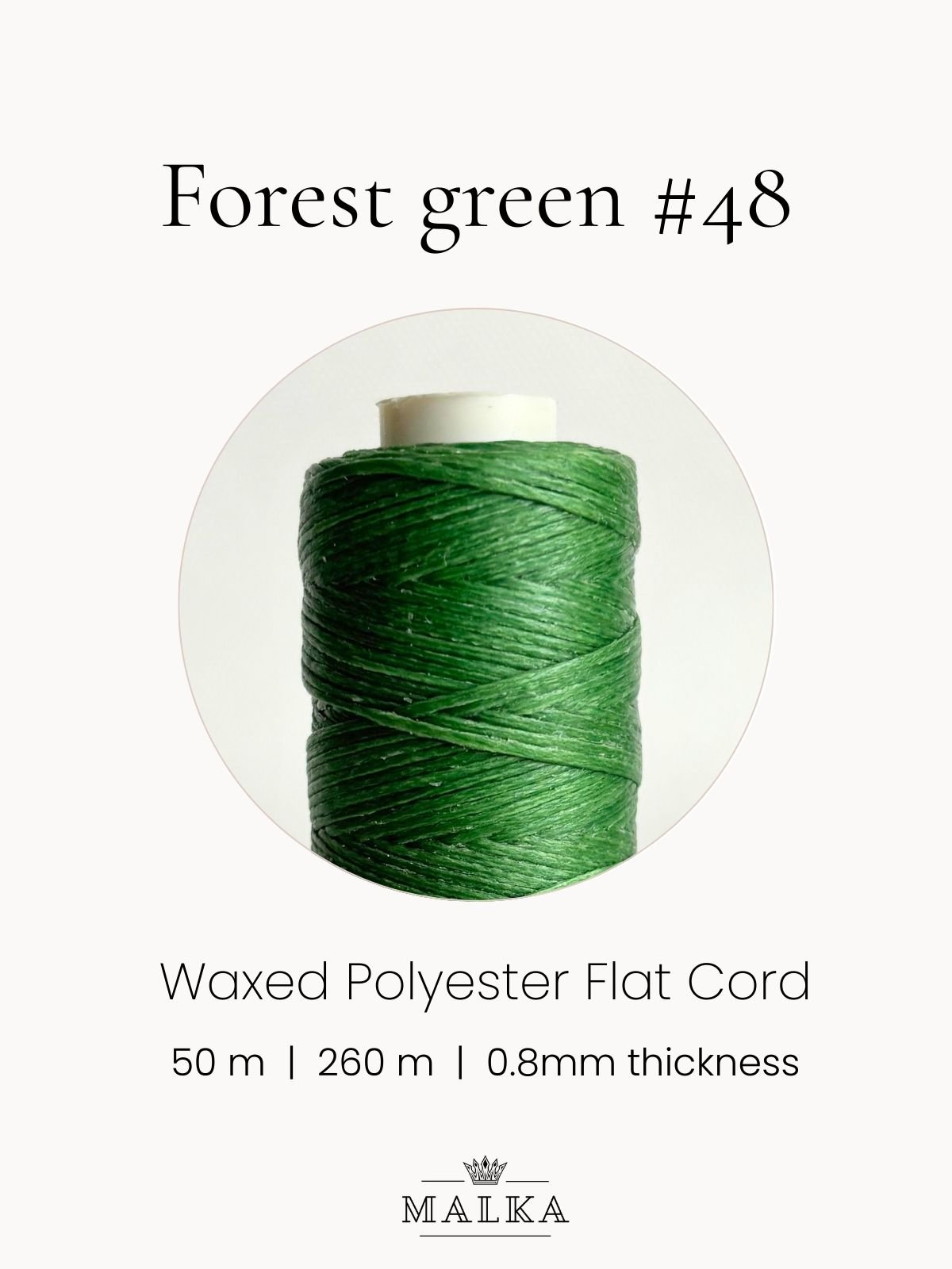 0.8mm Flat Waxed Macrame Cord – Forest Green (No. 48) 🧵 Type: Flat waxed polyester📏 Diameter: 0.8 mm📐 Length…