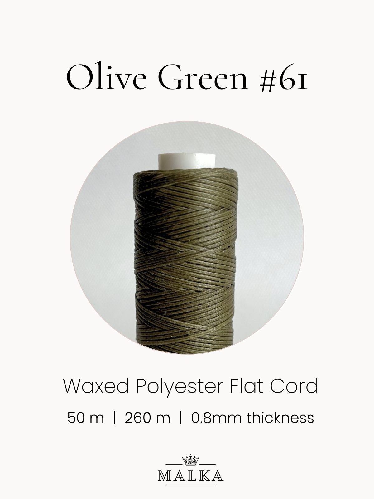 0.8mm Flat Waxed Macrame Cord – Olive Green (No. 61) 🧵 Type: Flat waxed polyester📏 Diameter: 0.8 mm📐 Length…