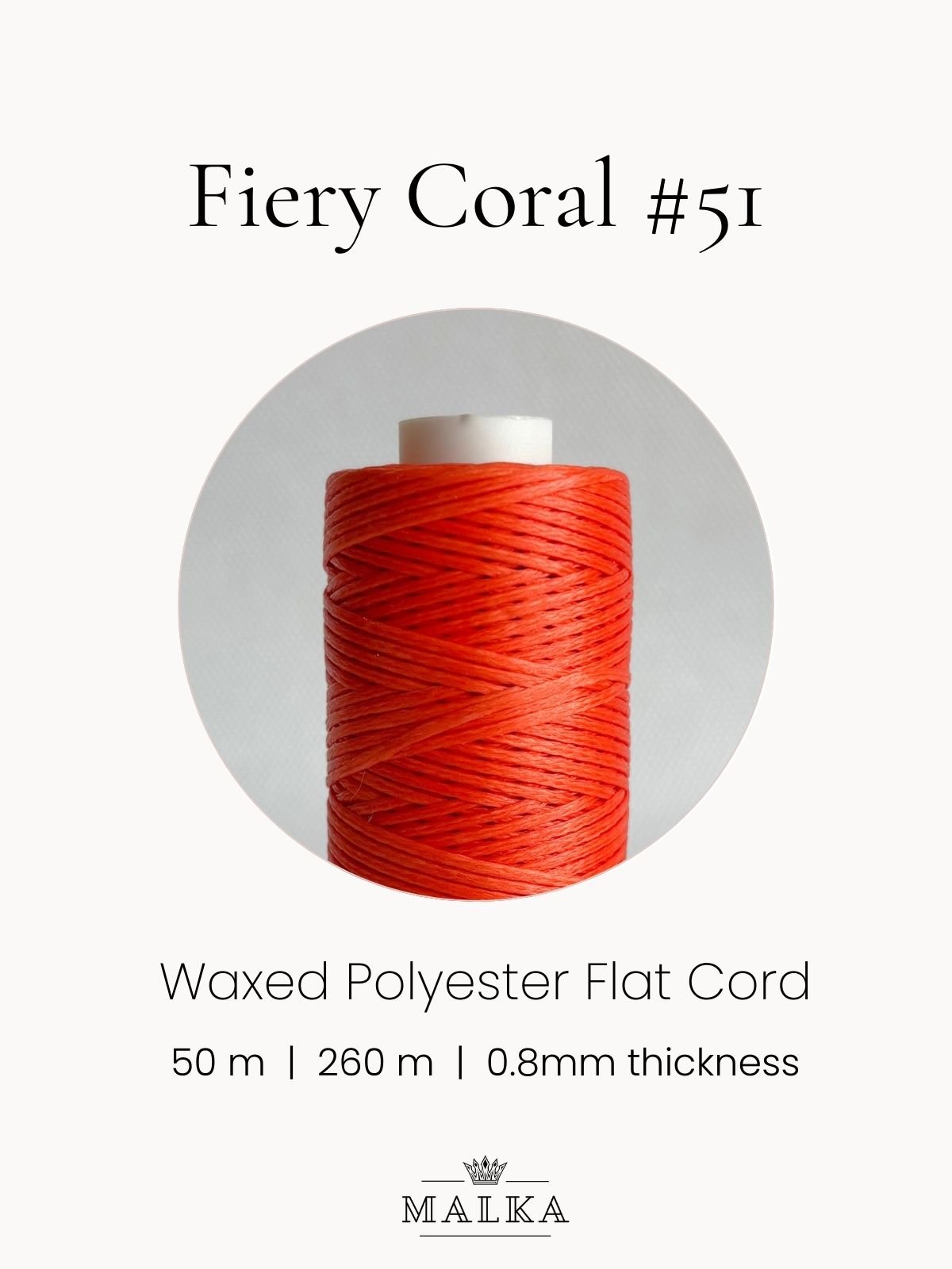 0.8mm Flat Waxed Macrame Cord – Fiery Coral (No. 51) 🧵 Type: Flat waxed polyester📏 Diameter: 0.8 mm📐 Length…