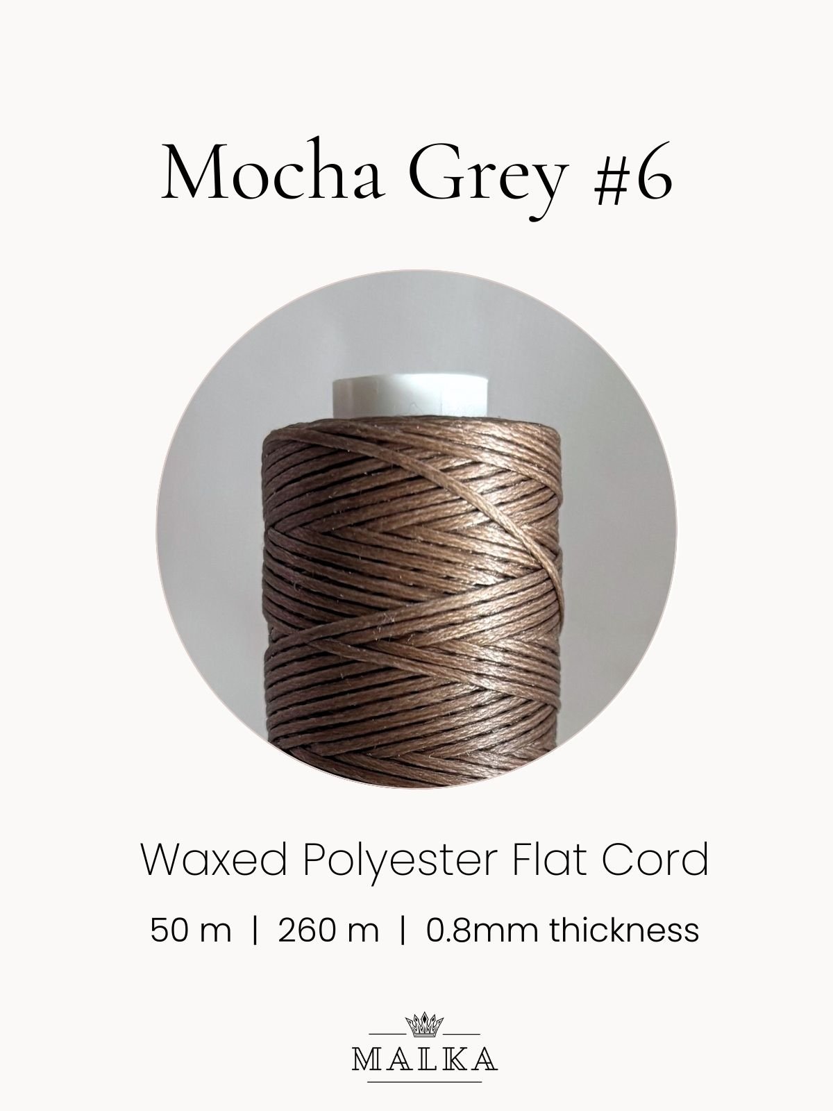 0.8mm Flat Waxed Macrame Cord – Mocha Grey (No. 6) 🧵 Type: Flat waxed polyester📏 Diameter: 0.8 mm📐 Length :…