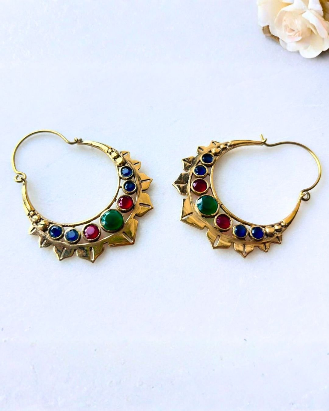 5 Pairs Multicolor Tribal Stone Brass Earrings Handcrafted gold plated brass earring featuring adorned with vibrant multi…
