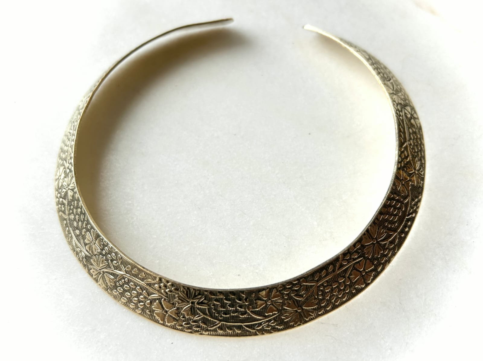 Embossed Botanical Tribal Brass Choker Set A pair of richly embossed brass chokers with a round silhouette…