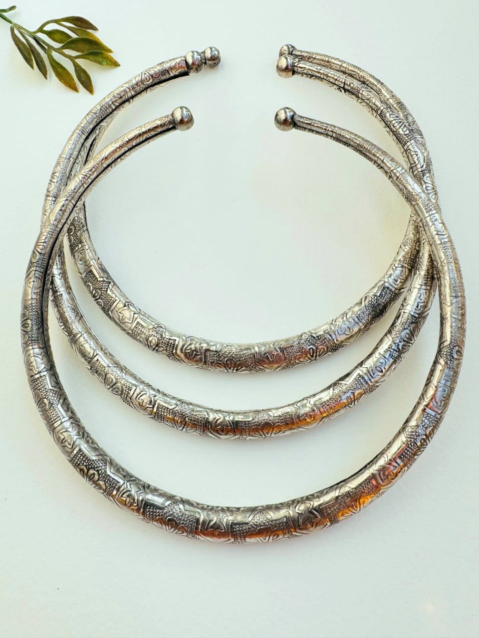 Tribal Pattern Silver Toned Brass Choker Set A sleek and simple set of 3 handcrafted brass chokers…