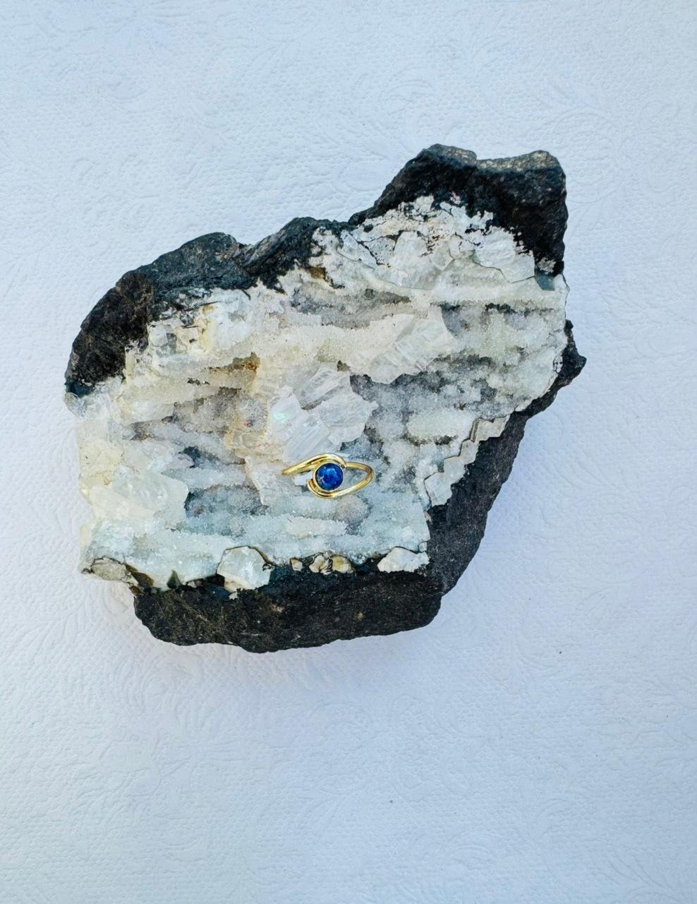 5 Pieces Lapis Lazuli Swirl Brass Ring A polished gold-colored ring featuring a round blue lapis lazuli…