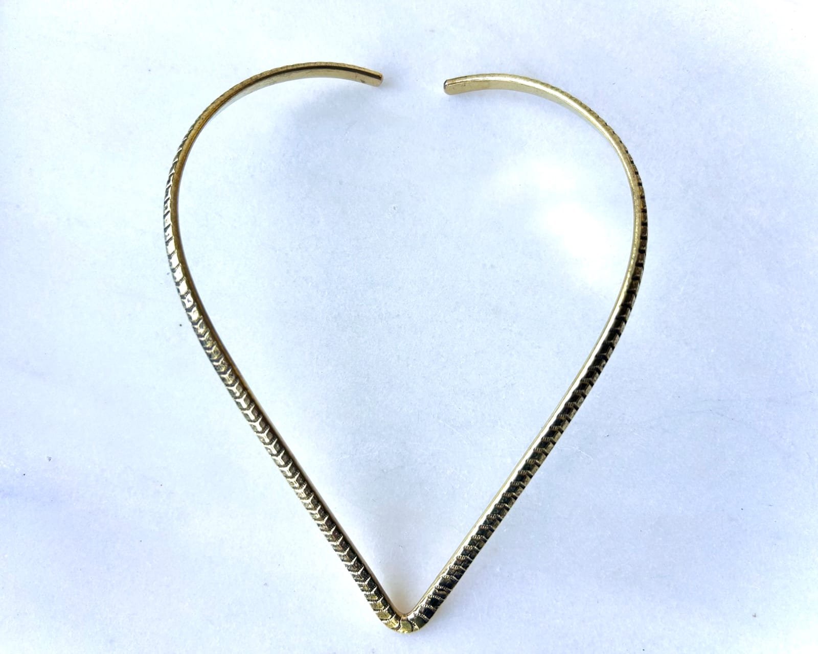 Textured V Shape Brass Choker Set A sleek brass choker featuring a sharp V shaped silhouette and…