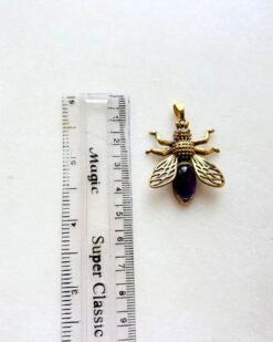 This handcrafted brass pendant is shaped as a detailed bee, symbolizing creativity, abundance, and harmony with nature. The finely cut openwork wings add lightness and movement, while the polished purple stone forms the bee’s body, creating a striking contrast against the warm brass tone.