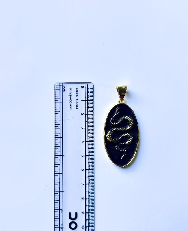 This handcrafted brass snake pendant embodies mystique and symbolism. The detailed serpent design is set in an elongated oval frame, contrasting beautifully against the dark enamel background. The smooth finish and polished brass give it a timeless appeal suitable for both men and women. Perfect as a centerpiece pendant for necklaces or as a statement amulet for jewelry designers inspired by ancient and spiritual symbolism.