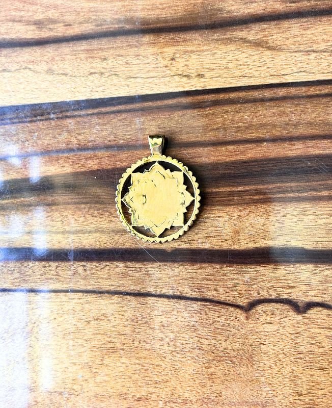 This stunning brass mandala pendant showcases a beautifully detailed floral design framed within a circular border. The piece is carefully handcrafted with symmetrical patterns inspired by traditional mandala art, symbolizing harmony and balance. Its intricate etching and fine brass polish make it a standout element for boho or spiritual jewelry.