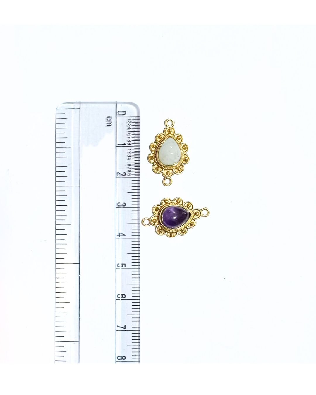 10 Drop Brass Charms Connectors - Amethyst + Moonstone - Image 2