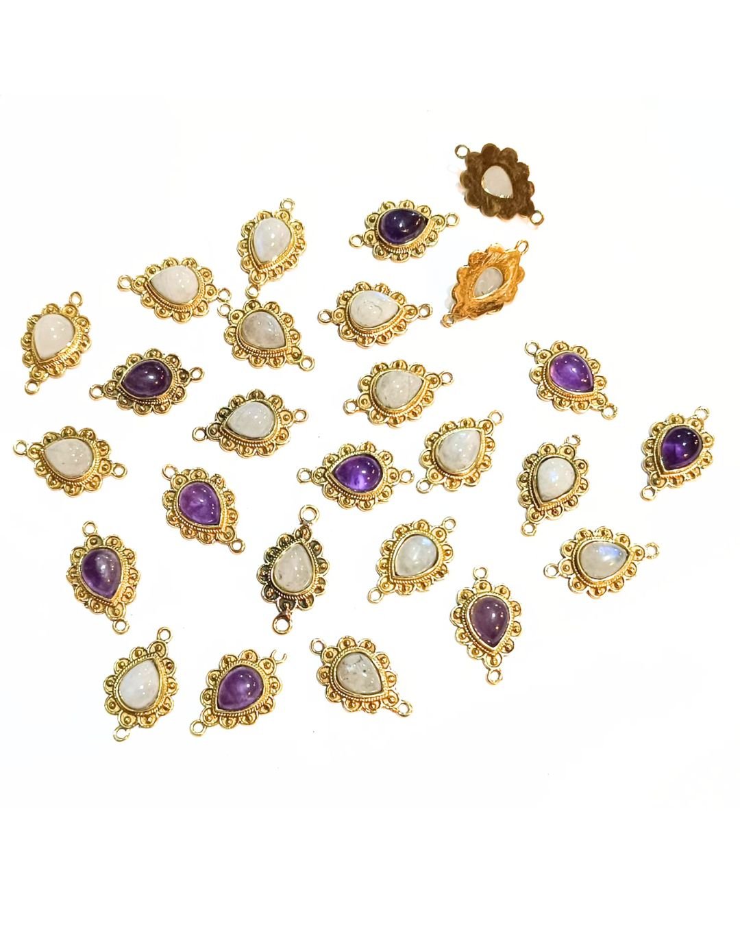 10 Drop Brass Charms Connectors – Amethyst + Moonstone