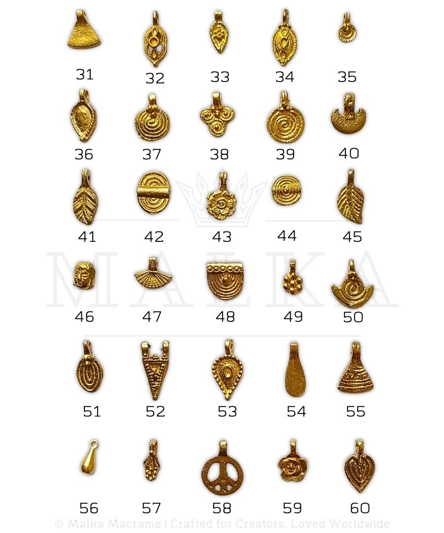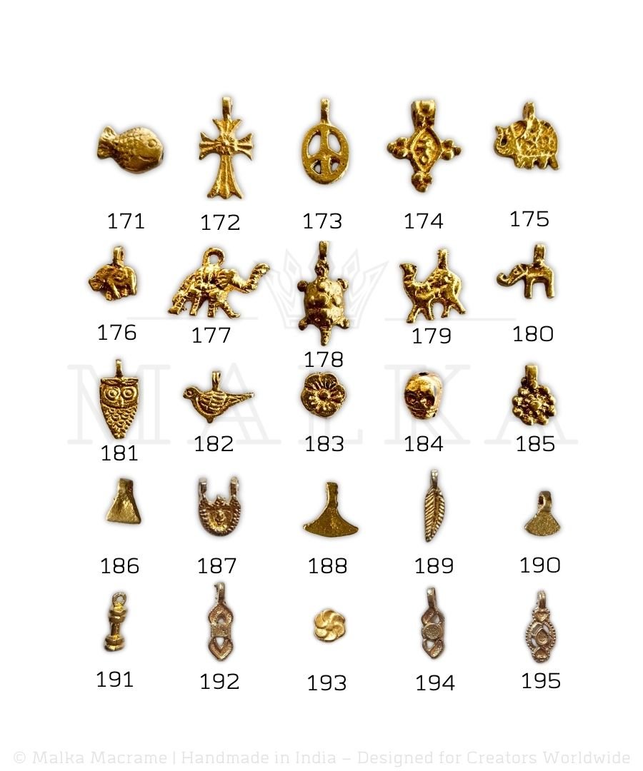 Our high-quality brass charms are perfect for your jewelry making, macramé, and intricate craft projects. Designed for durability, versatility, and ease of use, these charms are ideal for creating stunning jewelry pieces, adding a unique touch to your designs. Whether you are crafting for personal use or large-scale projects, we offer a variety of options at great prices.