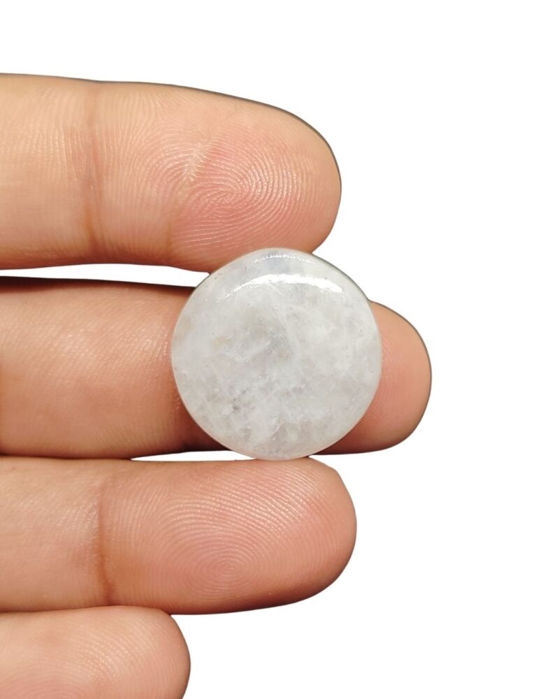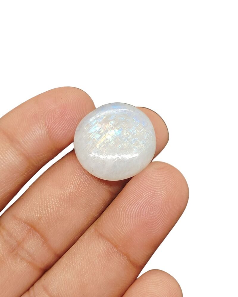 Our Moonstone is responsibly sourced and professionally cut and polished in India by skilled artisans. Each stone is carefully inspected, individually coded, and offered as a single, one-of-a-kind piece.