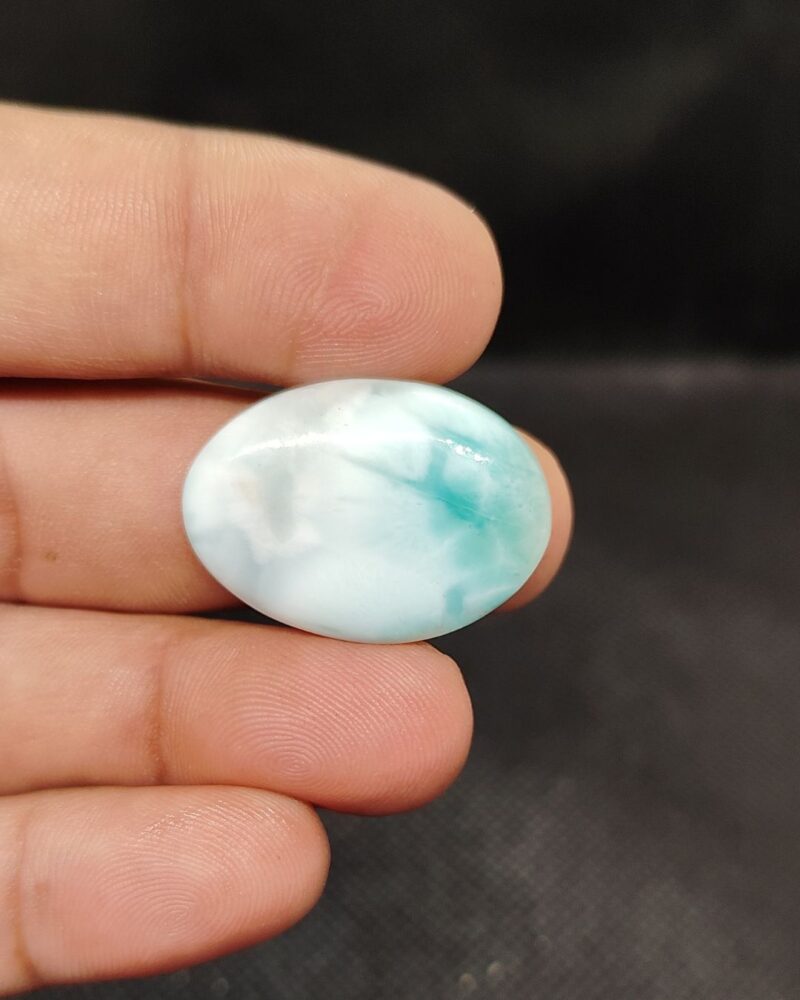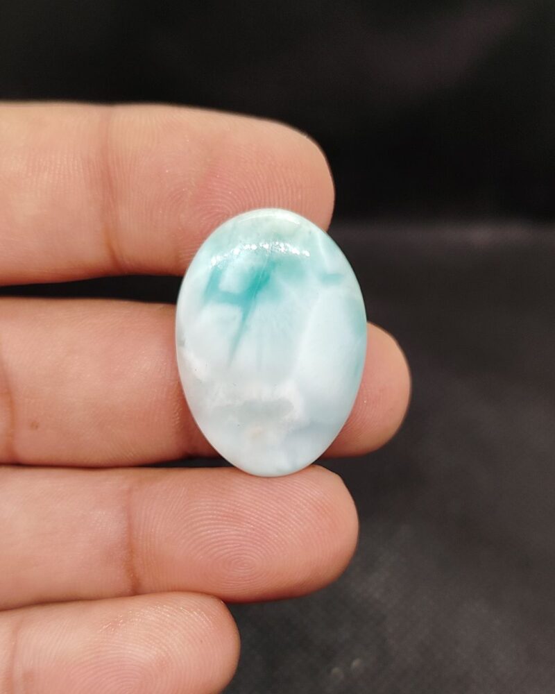 This Larimar gemstone showcases beautiful soft blue tones with natural white marbling, reminiscent of ocean waves and Caribbean skies. From light sky-blue shades to deeper aqua hues, each stone carries a calm, refreshing energy and a unique natural pattern that stands out in any design. Larimar is found only in the Dominican Republic, making it a rare and highly sought-after gemstone.