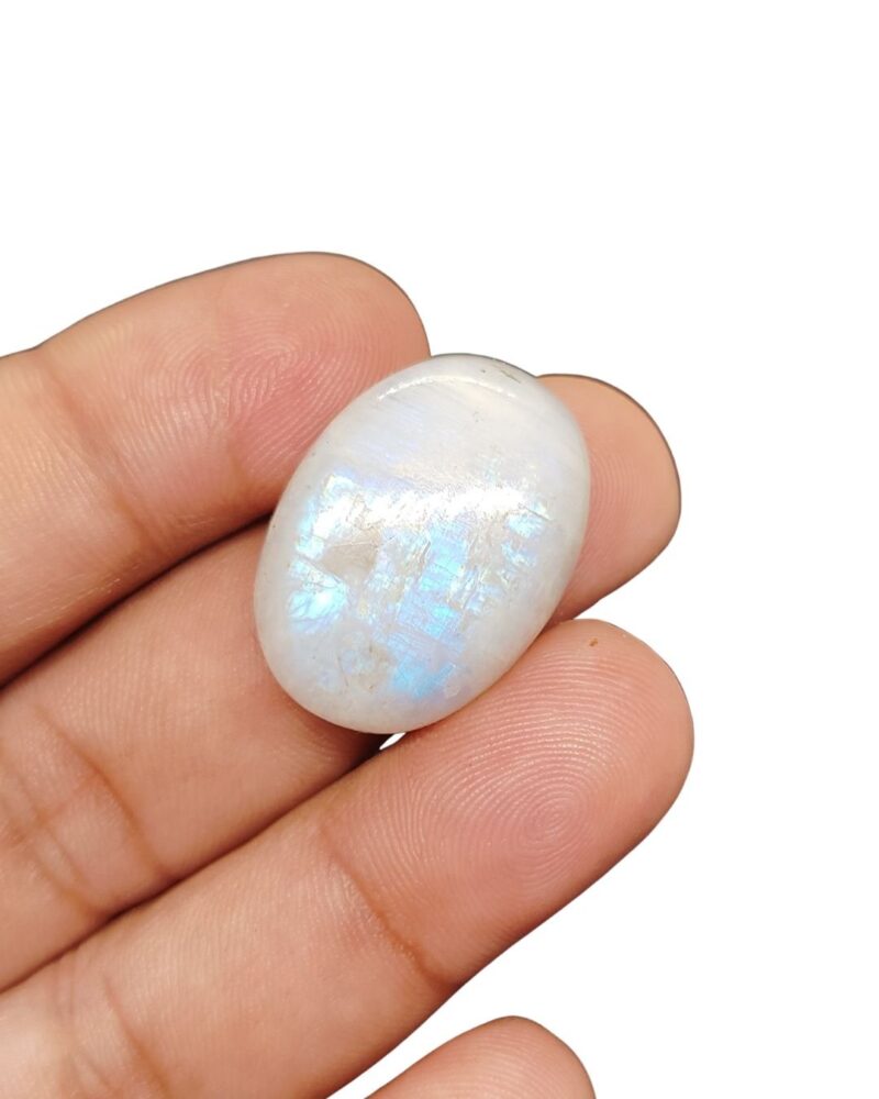 Our Moonstone is responsibly sourced and professionally cut and polished in India by skilled artisans. Each stone is carefully inspected, individually coded, and offered as a single, one-of-a-kind piece.
