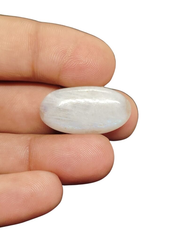 Our Moonstone is responsibly sourced and professionally cut and polished in India by skilled artisans. Each stone is carefully inspected, individually coded, and offered as a single, one-of-a-kind piece.
