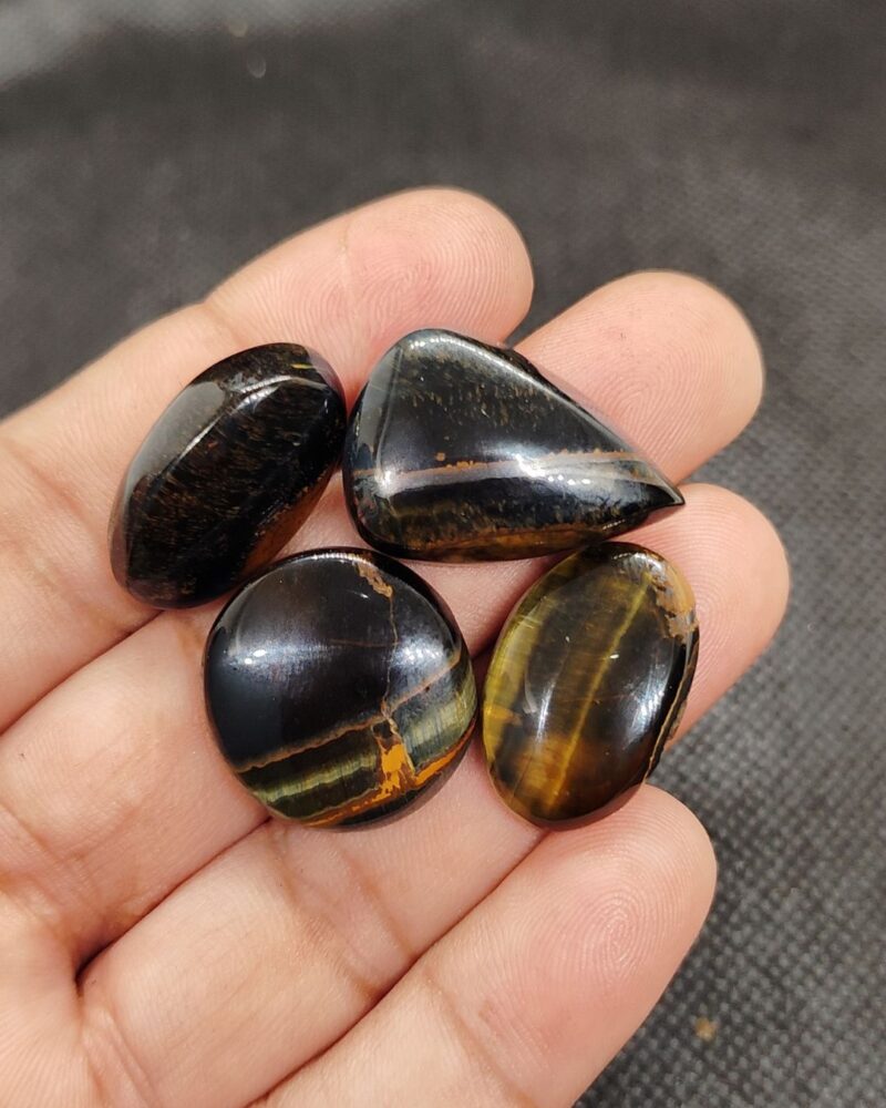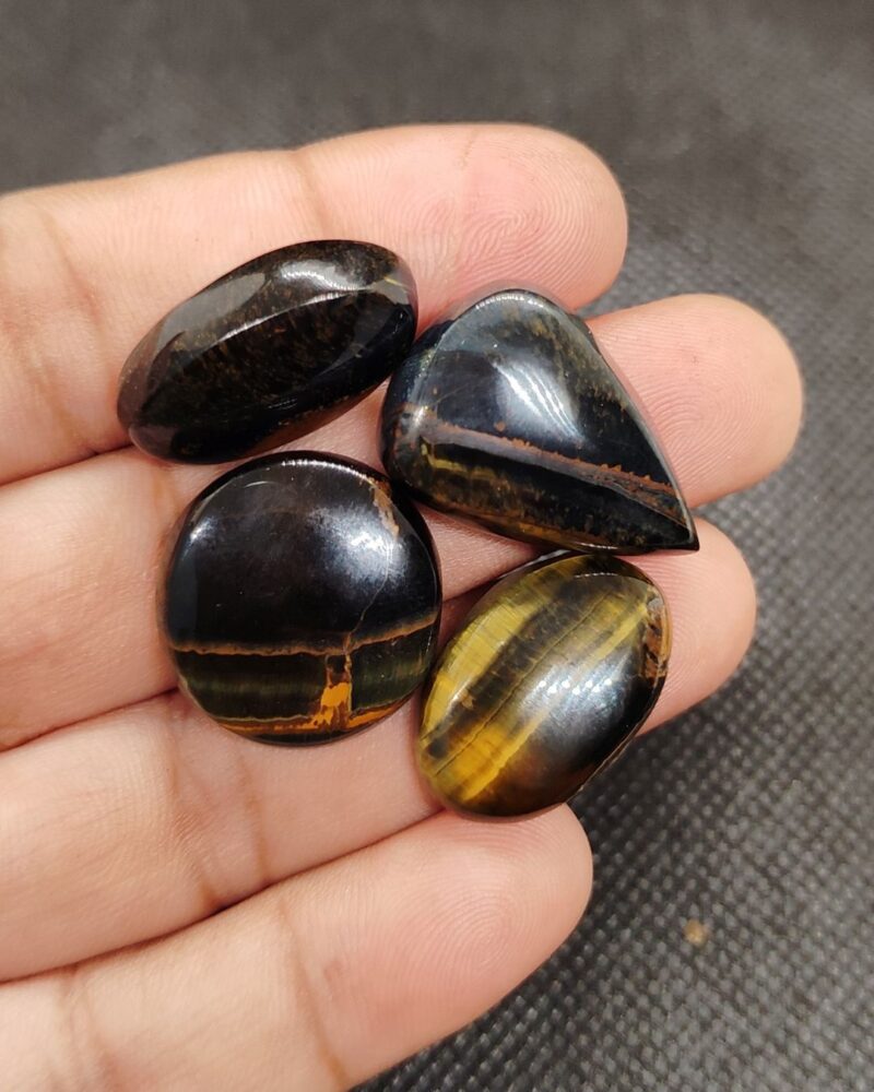 Black Tiger Eye Cabochon – Set of 4, Mixed Sizes (22–27mm)