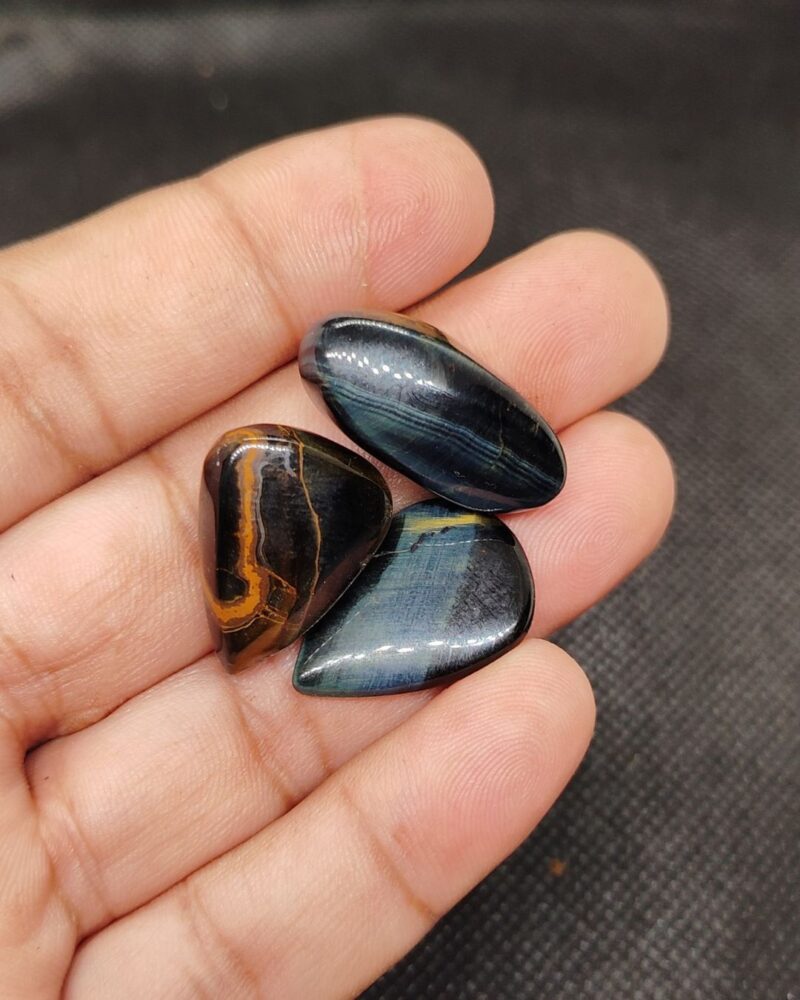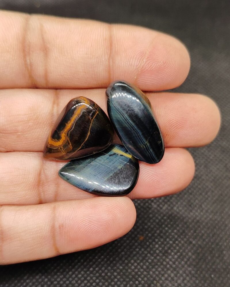Black Tiger Eye Cabochon – Set of 3, Mixed Sizes (23–27mm)