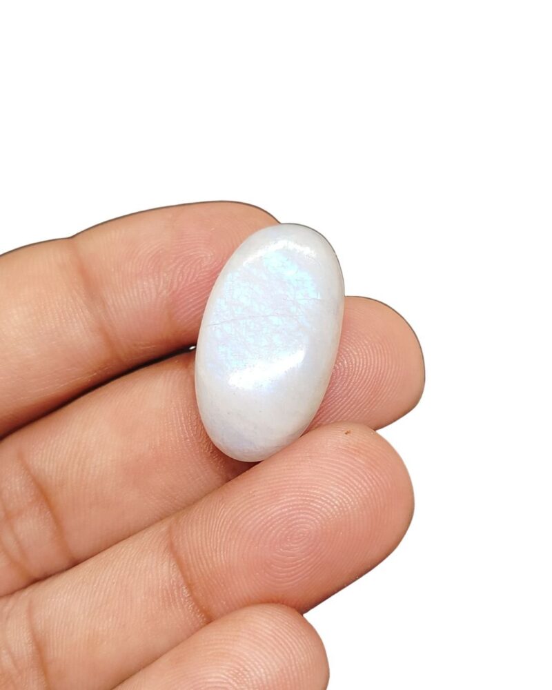 Our Moonstone is responsibly sourced and professionally cut and polished in India by skilled artisans. Each stone is carefully inspected, individually coded, and offered as a single, one-of-a-kind piece.
