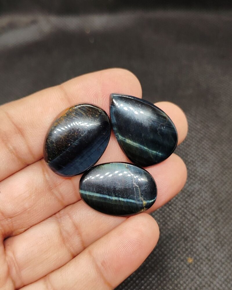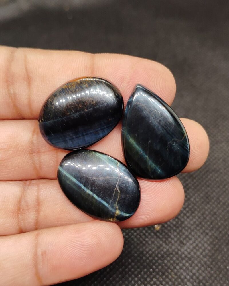 Black Tiger Eye Cabochon – Set of 3, Mixed Sizes (26–28mm)