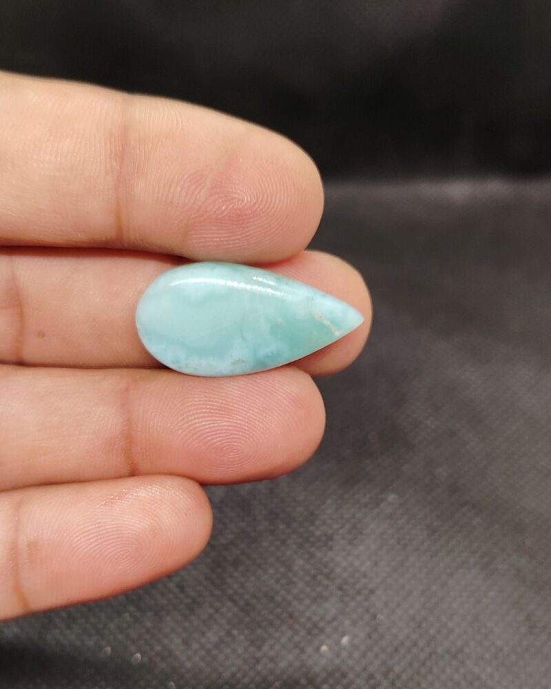 This Larimar gemstone showcases beautiful soft blue tones with natural white marbling, reminiscent of ocean waves and Caribbean skies. From light sky-blue shades to deeper aqua hues, each stone carries a calm, refreshing energy and a unique natural pattern that stands out in any design. Larimar is found only in the Dominican Republic, making it a rare and highly sought-after gemstone.