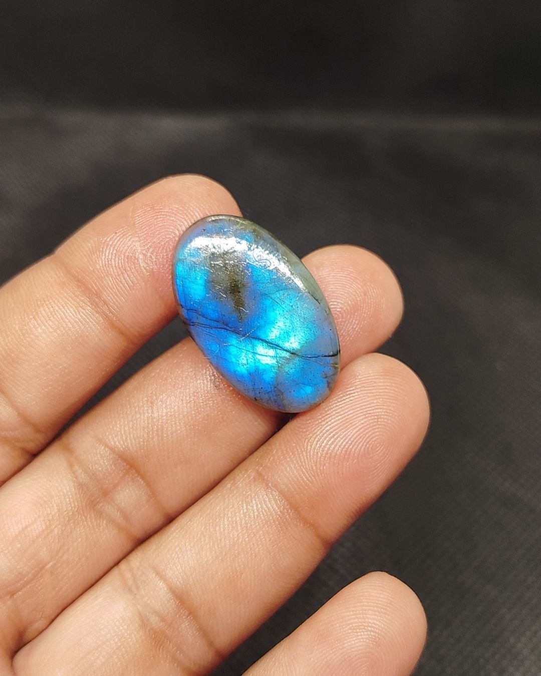 Natural labradorite with shimmering blue flash.