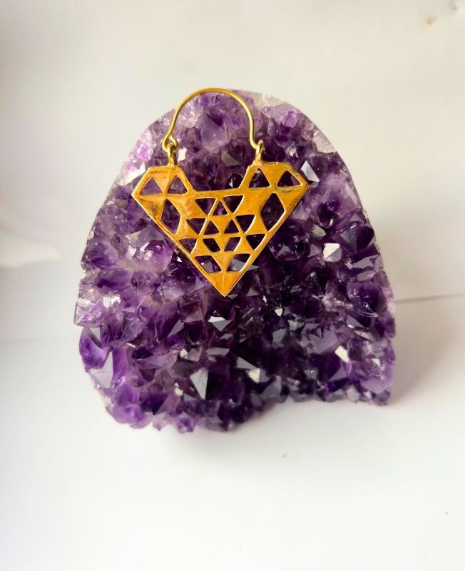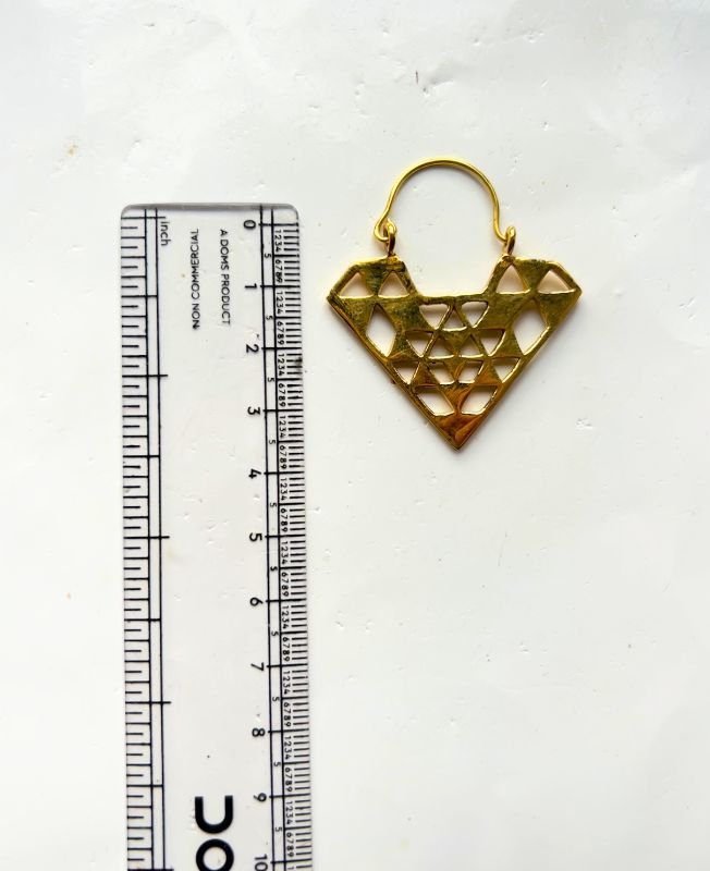 These stunning earrings are crafted from high-quality raw brass and feature a unique geometric design in a bold diamond shape. The intricate cutouts within the shape create a modern, airy look that feels both light and powerful. Whether worn alone or paired with other accessories, these earrings will add edge and elegance to any outfit.