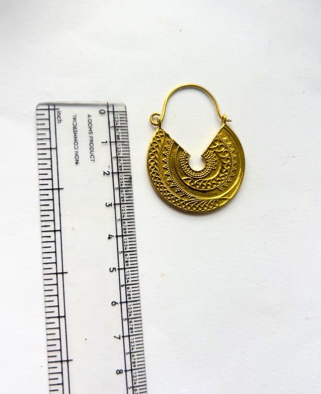 Boho Tribal Hoop Brass Earrings With Intricate Pattern In Matte Gold Tone for Jewelry Designs