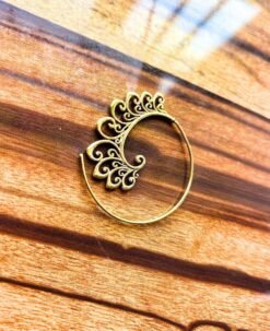 This exquisite brass filigree hoop earring showcases a beautifully detailed fan motif that embodies a blend of vintage artistry and modern charm. The intricate scrollwork is crafted by hand, giving it a delicate yet bold presence. The piece reflects both artistry and craftsmanship, combining vintage charm with modern versatility.