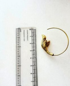 This handcrafted brass bird hoop earring showcases an intricate flying bird design that captures motion and grace. Made from solid brass, it radiates a warm golden tone that develops a natural patina over time, adding to its vintage charm. The detailed feather texture and curved shape highlight traditional metalworking techniques, making it a perfect choice for those who love artisanal and symbolic jewelry.
