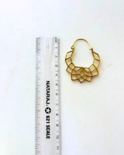 This beautifully crafted brass earring features a geometric lotus mandala design formed by layered openwork segments. The symmetrical petal-like shapes create depth and structure while keeping the piece light and airy.