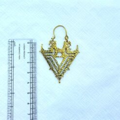 Handcrafted gold plated brass earring featuring a powerful symmetrical design inspired by ancient and ethnic motifs. Lightweight and perfect for a bold yet elegant look.