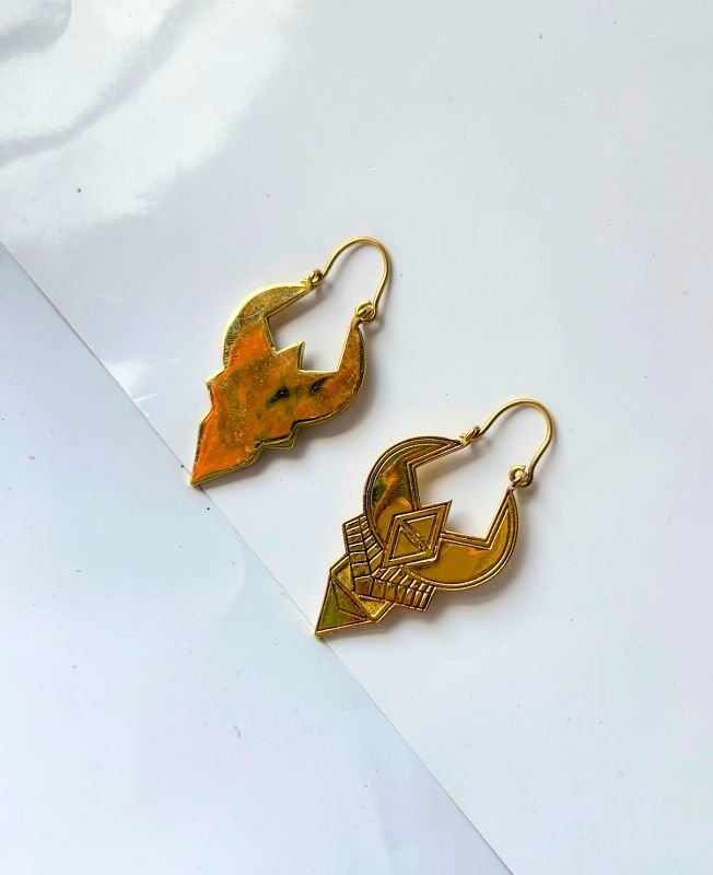Inspired Tribal Geometric Brass Earrings With Intricate Design In Matte Gold Tone for Jewelry Designs