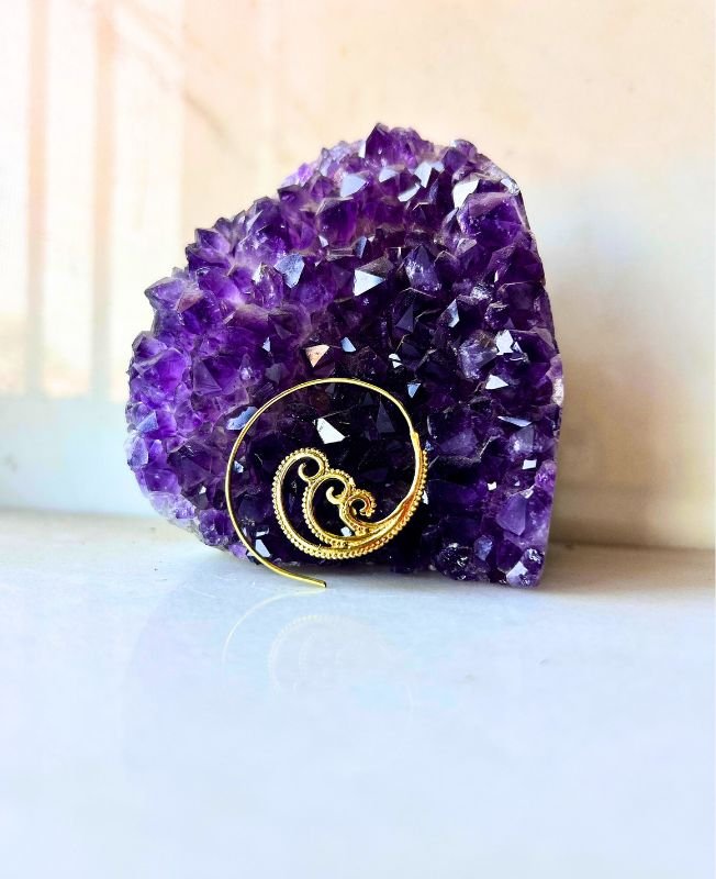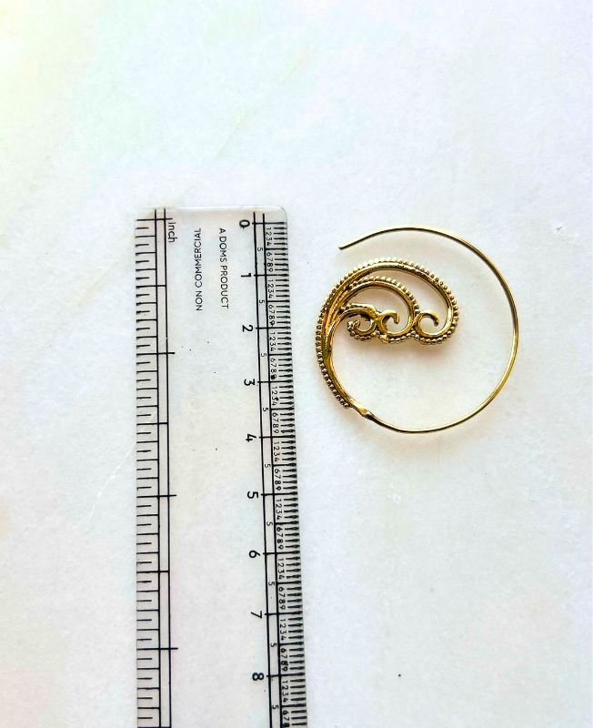 This stunning brass spiral filigree hoop earring combines traditional craftsmanship with timeless beauty. The swirling openwork pattern adds texture and sophistication, creating a piece that’s both eye-catching and comfortable for daily wear. Made from high-quality brass, it offers a warm golden tone that complements any skin tone and outfit style.