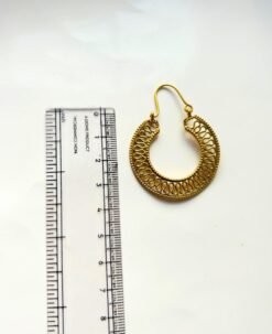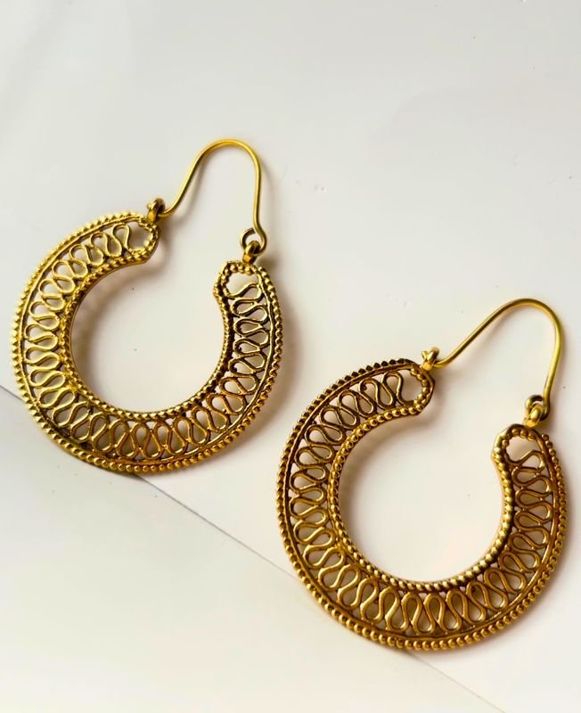 This exquisite golden loop filigree earring features an ornate openwork pattern with intricate handcrafted details. The antique gold tone adds a touch of vintage charm, making it perfect for pairing with traditional wear or adding a statement to modern outfits.