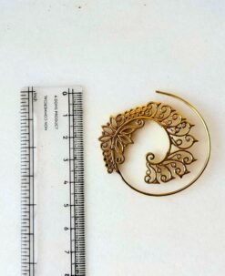 These stunning Brass Filigree Spiral Hoop Earrings feature an intricate design blending floral and swirl motifs, symbolizing beauty and creativity. Crafted with precision from high-quality brass, each earring showcases delicate handwork and ornate detailing reminiscent of traditional Indian jewelry art.