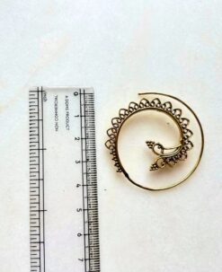 This beautifully handcrafted brass hoop earring showcases exquisite peacock-inspired filigree artistry, a perfect blend of traditional craftsmanship and modern style. The detailed pattern gives it a regal yet earthy appearance, ideal for those who love statement jewelry with cultural depth.