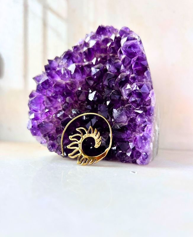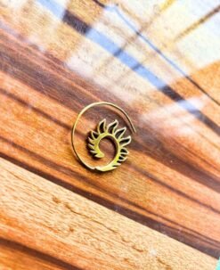 This stunning brass hoop earring features a spiral sunburst design handcrafted with care to capture the essence of natural radiance and energy. The sun-like pattern radiates outward from the center, representing strength, balance, and harmony. Its smooth golden finish adds a warm, earthy glow, making it a versatile accessory for both casual and statement looks.