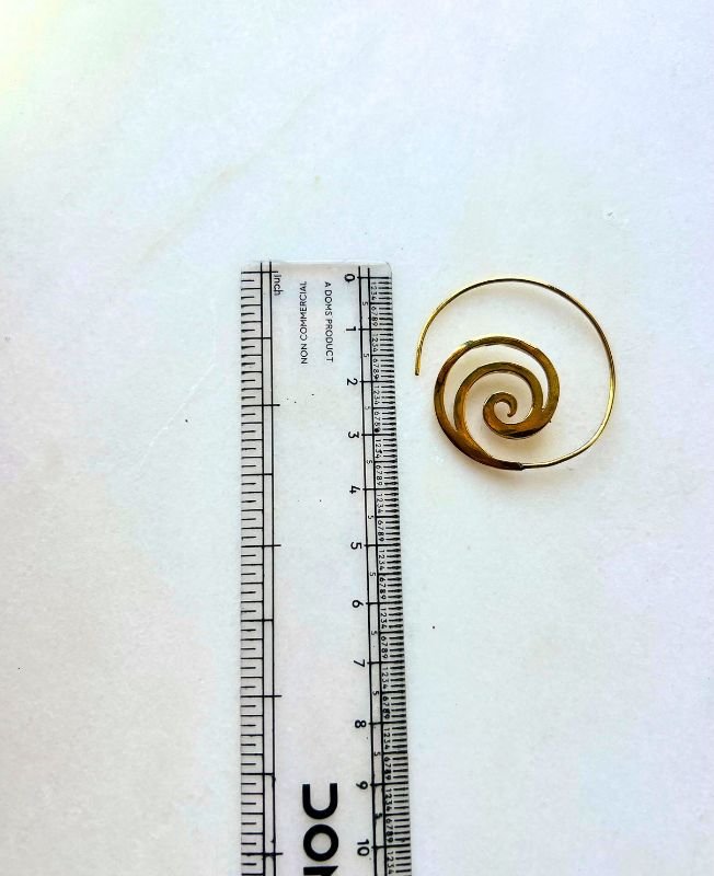 This exquisite spiral earring is crafted from high-quality solid brass, shaped into a beautiful swirl pattern that symbolizes growth and evolution. Its handcrafted texture and golden hue make it a striking statement piece suitable for everyday wear or special occasions.
