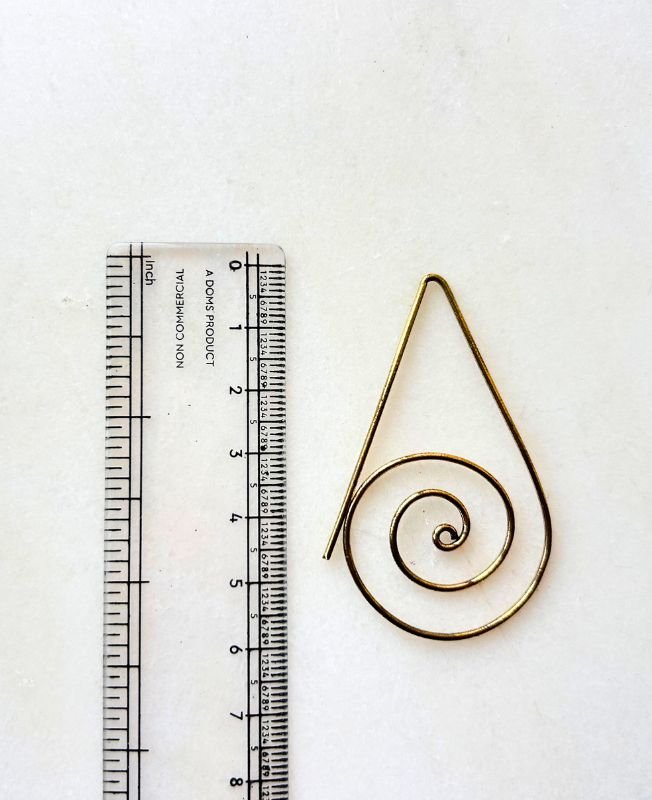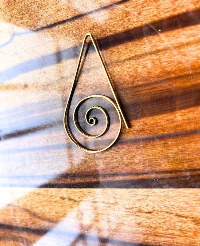 These elegant spiral filigree earrings are beautifully handmade from solid brass, featuring a teardrop outline with an inner spiral that symbolizes growth, energy, and balance. The clean, open-frame design gives them a light and airy look while maintaining a striking statement effect. Perfect for pairing with both casual and artistic outfits, these earrings bring a touch of timeless boho charm and spiritual symbolism. The high-quality brass develops a natural patina over time, enhancing its antique allure.