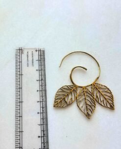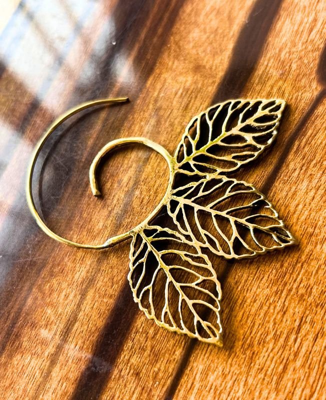 This stunning brass earring combines natural inspiration with artisan craftsmanship. The triple-leaf design is delicately shaped with intricate openwork detailing that captures light beautifully. Perfect for boho, tribal, or nature-inspired styles, this piece adds a touch of earthy elegance to any outfit.