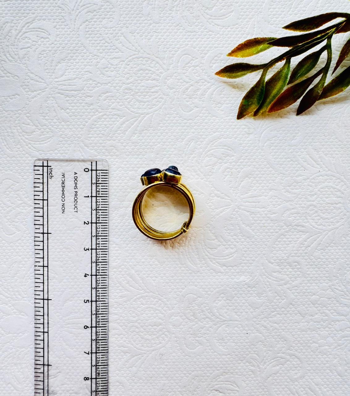 This elegant 5-piece brass ring set showcases a stunning combination of golden brass and deep blue lapis stones, creating a timeless artisanal look. Each piece is handcrafted with care by skilled artisans in India, featuring smooth finishes and slightly varied natural stones that make every ring unique.