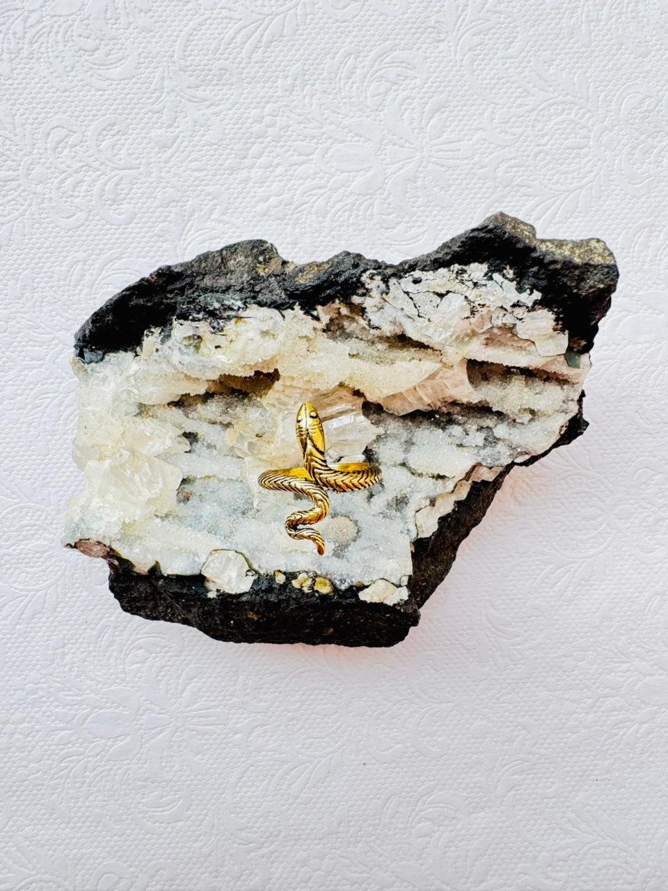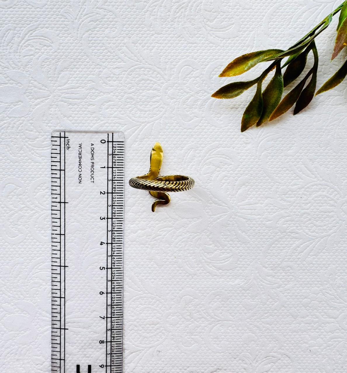 This stunning brass snake ring captures the essence of transformation and strength. Designed in a coiled serpent shape, it features detailed etching along the body and a gracefully curved head. The antique brass finish adds a vintage charm, making it perfect for statement jewelry collections, bohemian outfits, or spiritual adornments.