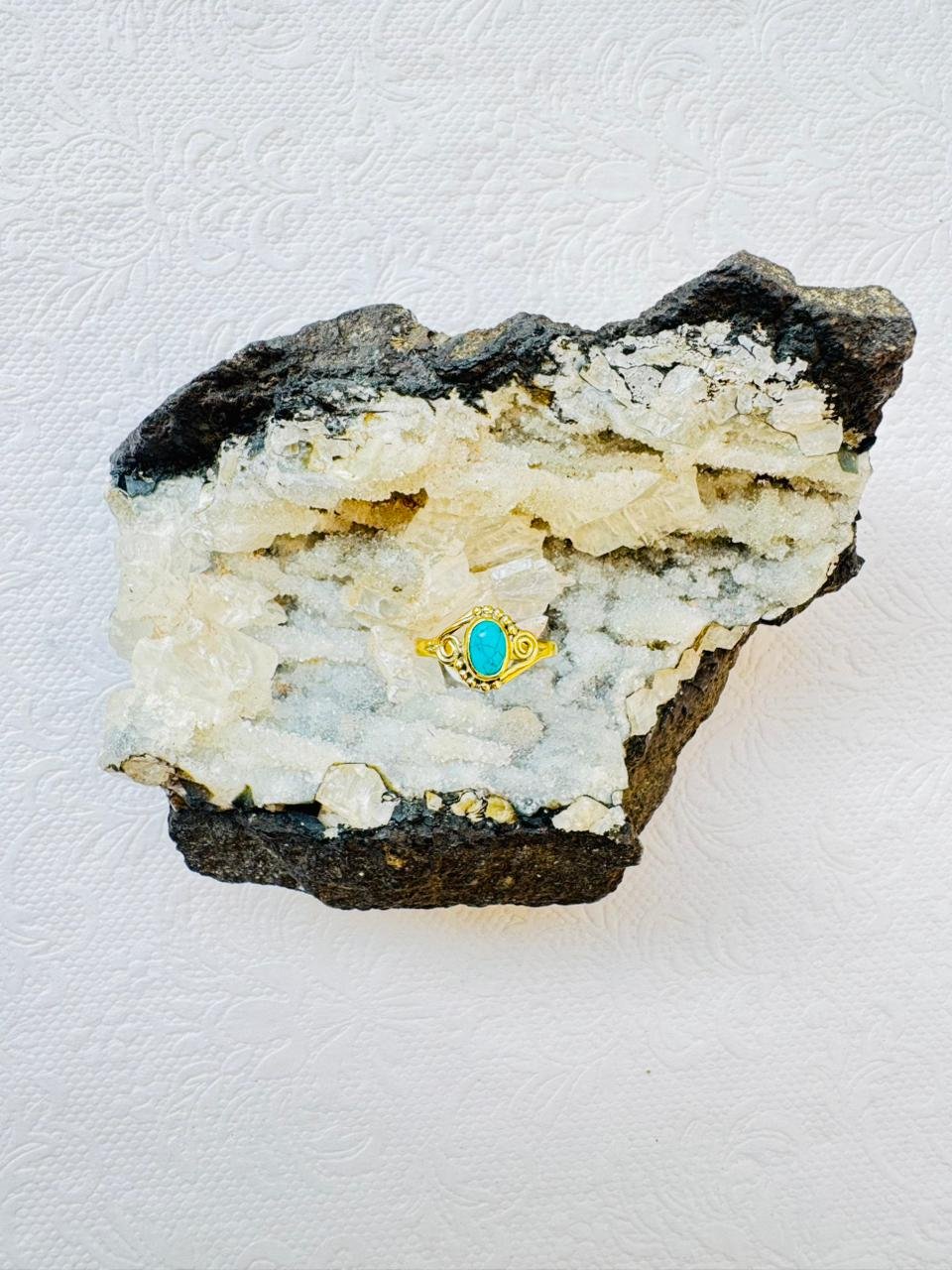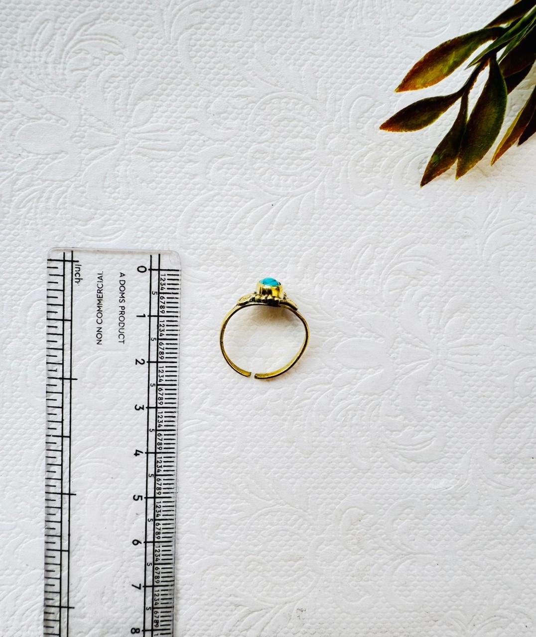Brass Detailed Turquoise Stone Ring